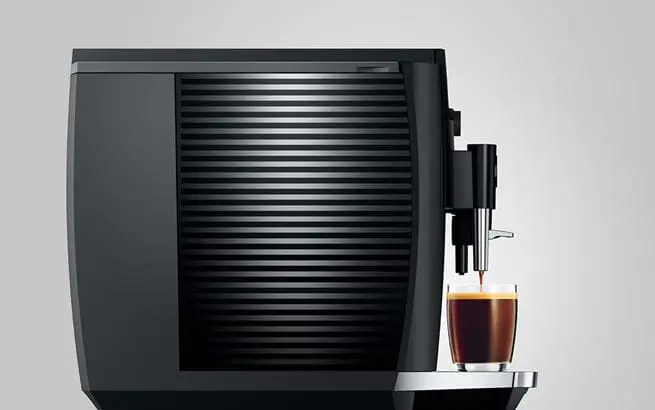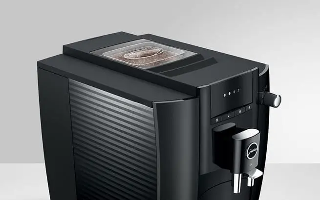 The E4 reflects the characteristic design of JURA coffee machines, with clean lines and surfaces. Crafted with maximum precision, the minimalist lines emphasise the premium quality of the machine. The use of colours follows the same minimalist approach. While the complete body of the machine is in understated Piano Black, chrome-plated details add accents and set off the finished coffee to perfection.