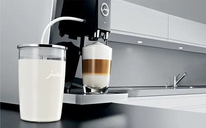 The glass milk container makes an indispensable addition for all coffee lovers who like to spoil their family and guests from time to time with a trendy flat white, latte macchiato or cappuccino. Perfectly harmonised with the typical lines of JURA design, it is easy to store in the refrigerator and connect up to the coffee machine as and when required. The milk lance is connected at just the right height to allow the milk to be drawn in and frothed with ease. The container holds 0.5 litres and is dishwasher-safe.